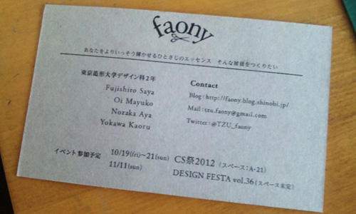 faonyは2012年度東京造形大学CS祭へ今年も参加します〜 やった〜